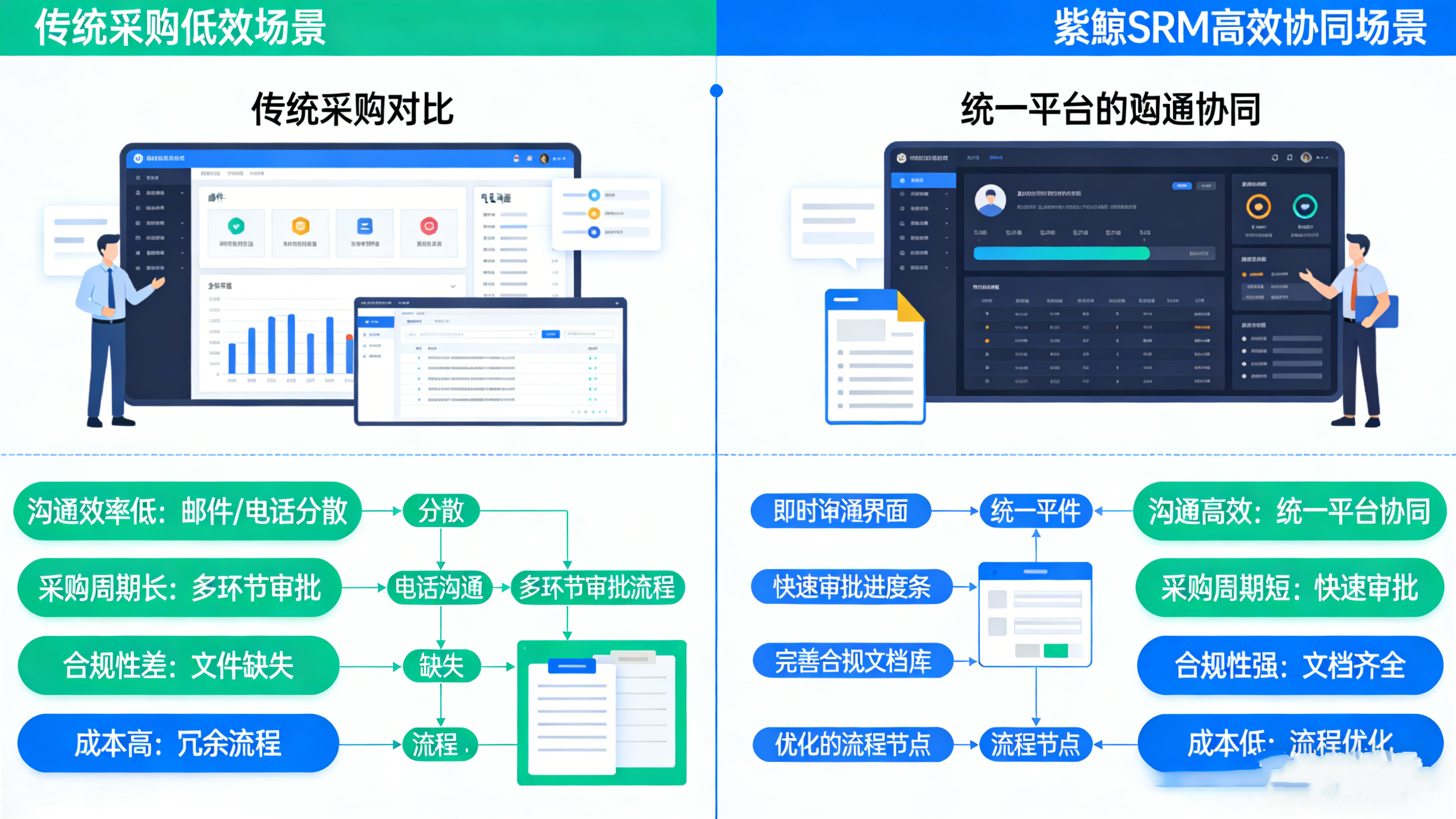 | 维度 | 传统模式 | 紫鲸SRM模式 | 提升效果 |