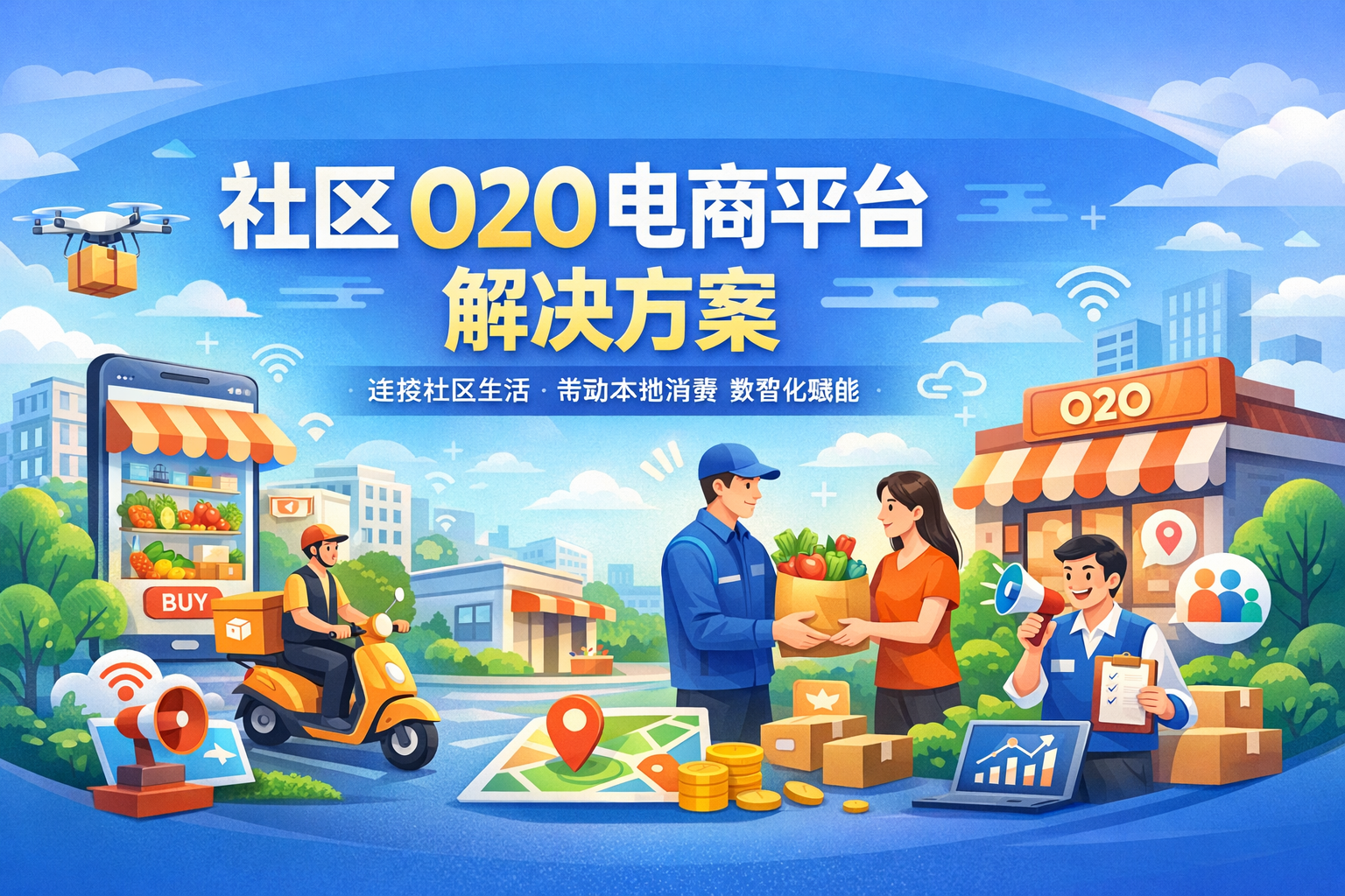 社区 O2O 电商平台解决方案,不是单一的小程序或商城系统,而是一套覆盖平台运营、商家管理、用户服务、配送履约、数据分析的整体数字化体系。